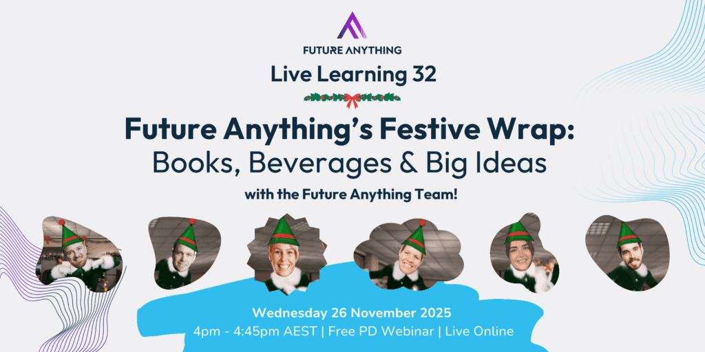 Here at Future Anything, we deliver staff professional development, student workshops and in-curriculum programs designed to support schools to deliver future-ready teaching and learning